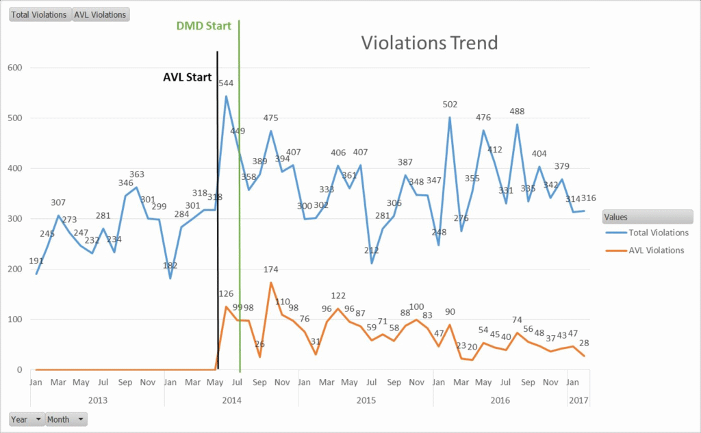 انخفضت مخالفات المرور من ~٥٥٠/شهر (٢٠١٤) → ~٤٠/شهر (٢٠١٦).
